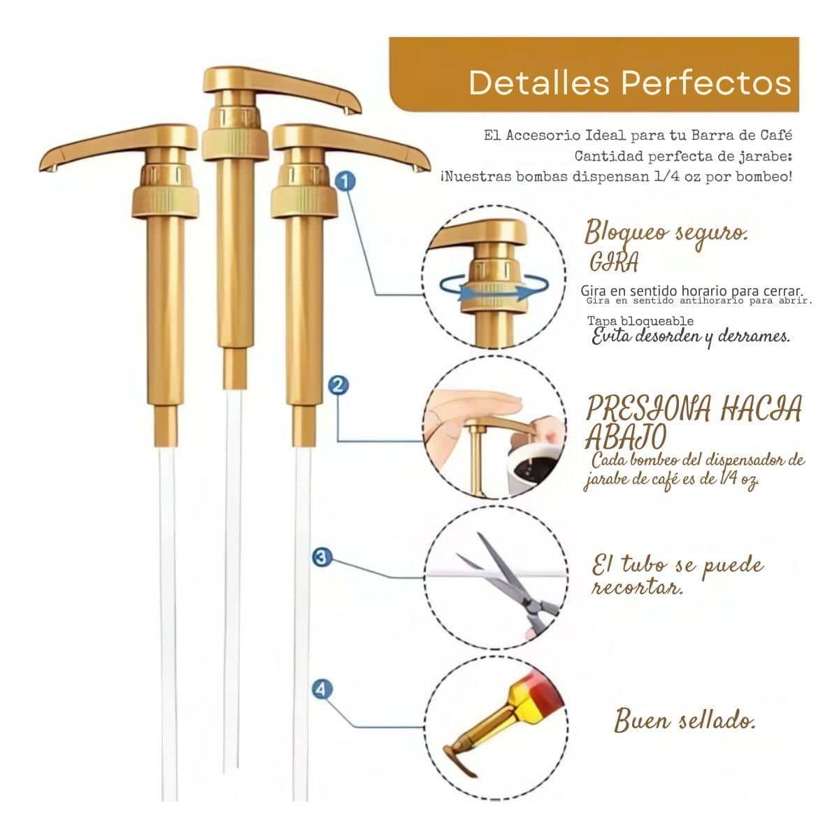 🔹 Fácil de usar y compatible con botellas de jarabe estándar.