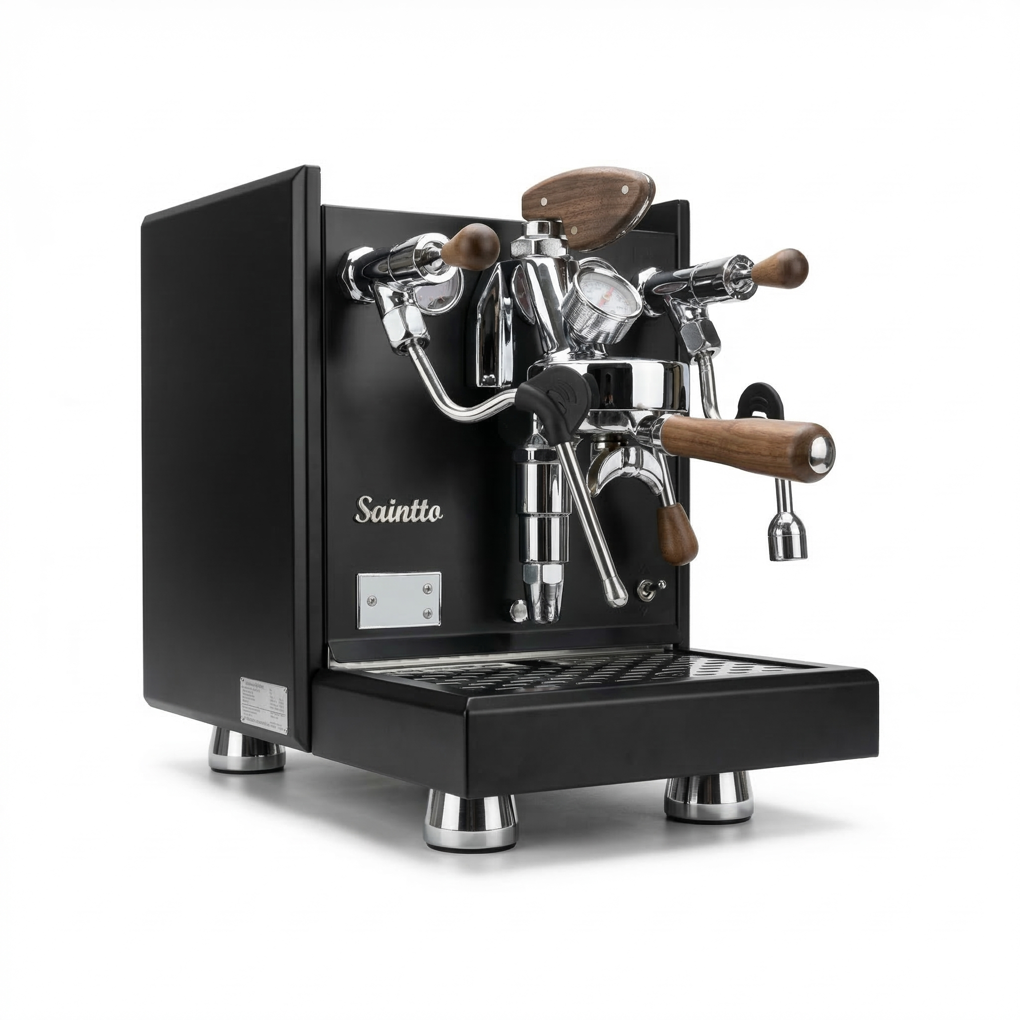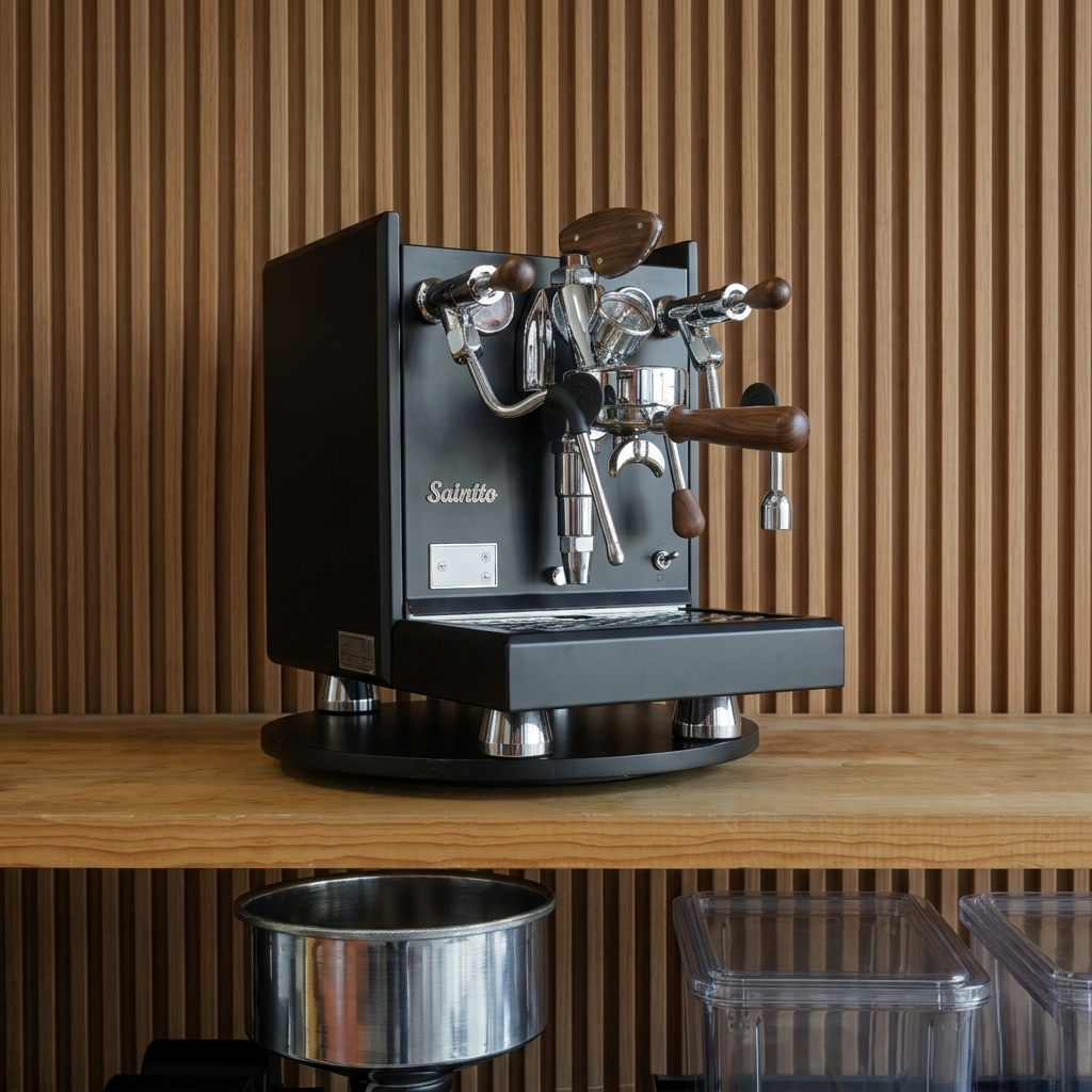 - Estética Premium: Portafiltro, palanca de grupo y perillas con detalles en madera real que elevan instantáneamente la elegancia de tu barra.