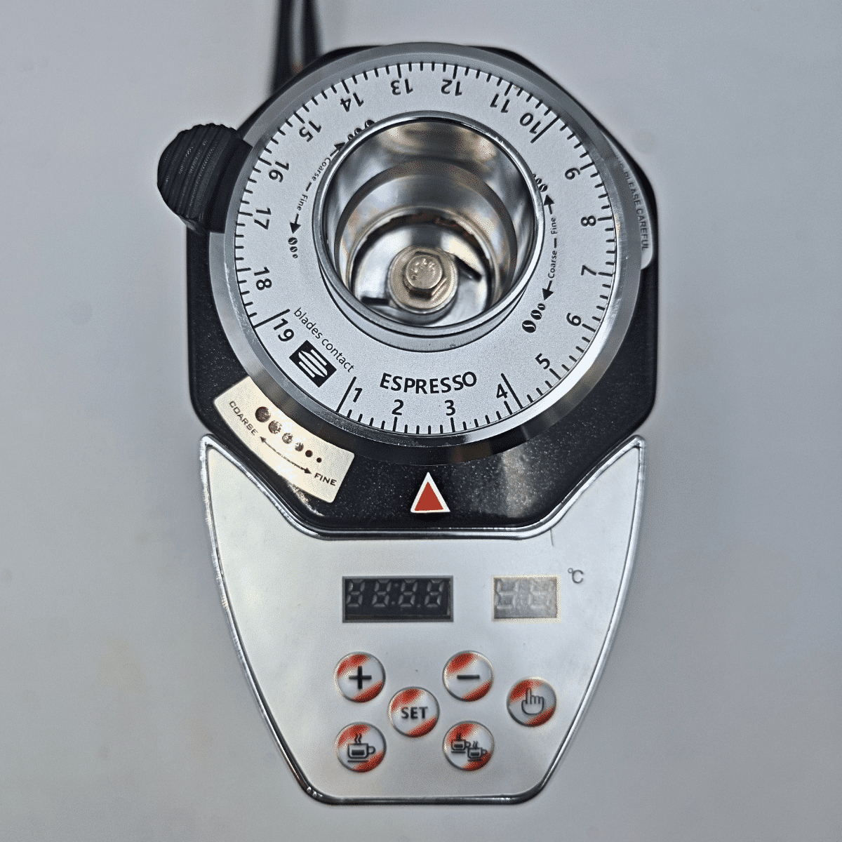Dosificación por tiempo programable: Repite tu rutina de molienda con la misma referencia exacta en cada preparación. Mayor velocidad en horas pico y cero desperdicio de café en tu barra.